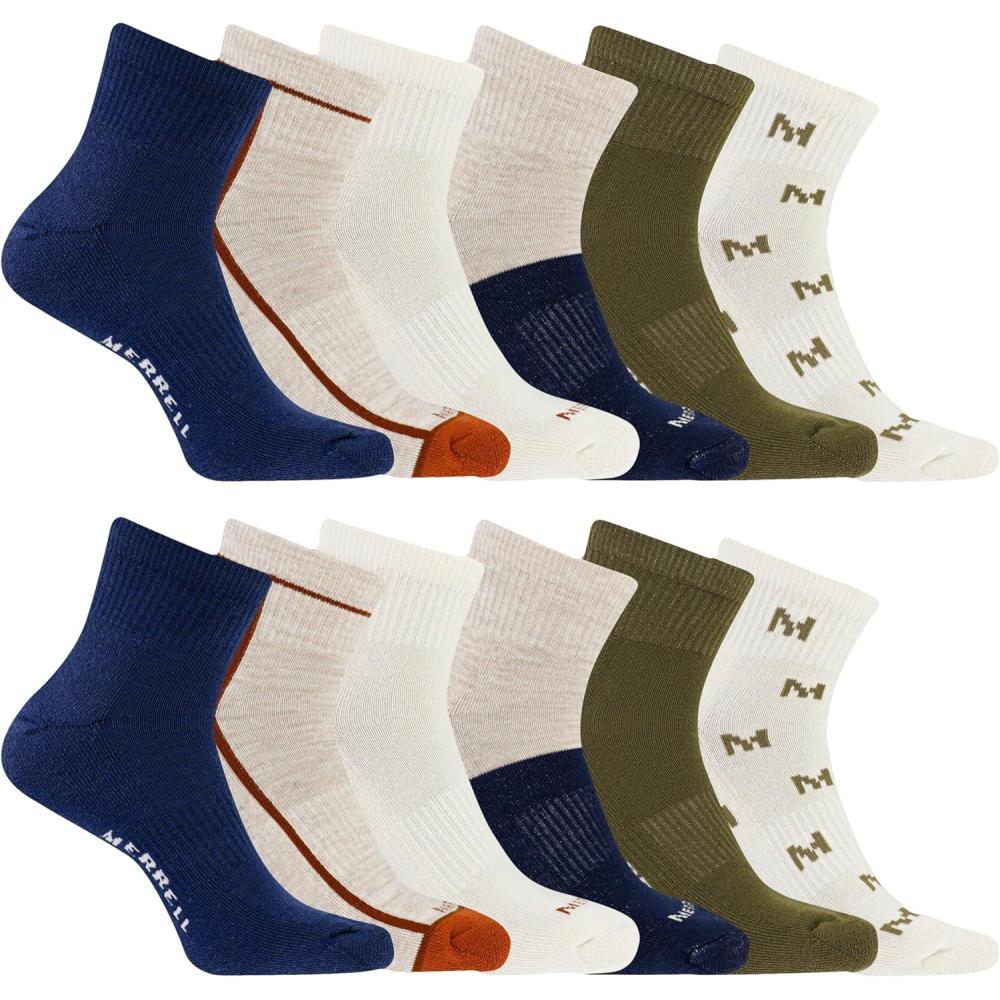 imageMerrell Mens and Womens Recycled Cushioned Ankle Socks6 ampamp 12 PairsHiking Arch SupportBlue Assorted 12 Pairs
