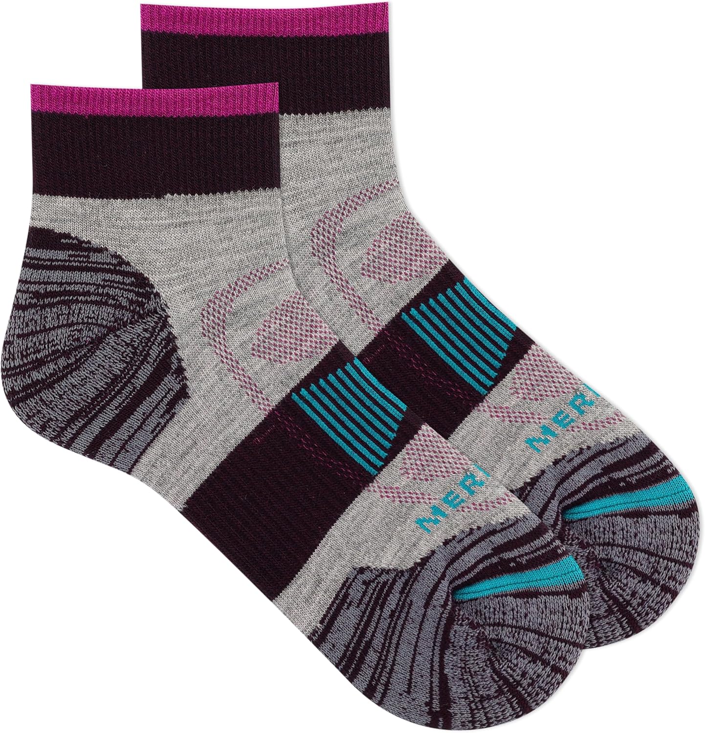 Merrell Men's and Women's Zoned Cushioned Wool Hiking Ankle Socks-Breathable Arch Support(Burgundy)