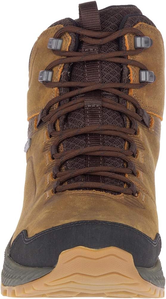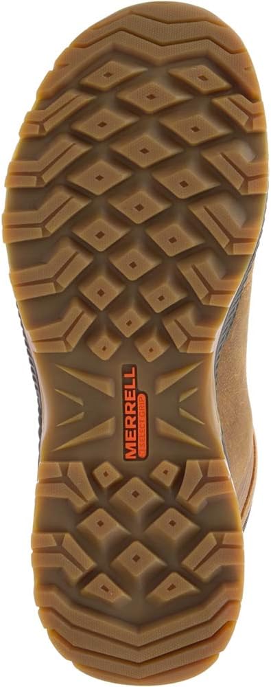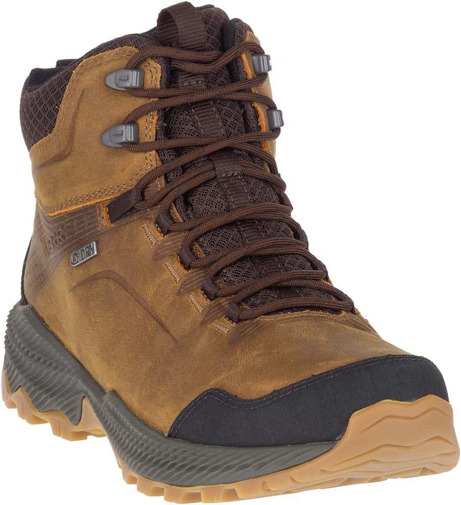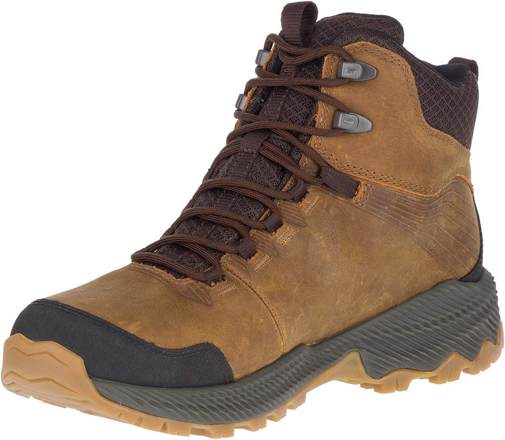 Go forth and conquer in this protective pack-ready leather mid waterproof hiker, built with cushion for comfort during your longest hikes. FEATURES: Waterproof membrane seals out water and lets moisture escape Waterproof full grain leather upper Metal hook traditional lace closure Bellows tongue keeps out debris Protective toe cap Breathable mesh lining Kinetic Fit BASE removable contoured insole for flexible support Molded nylon arch shank Lightweight EVA foam midsole for stability and comfort Merrell sticky rubber outsole tunes each outsole with durable traction that grips when and where you need it Lug: 5mm