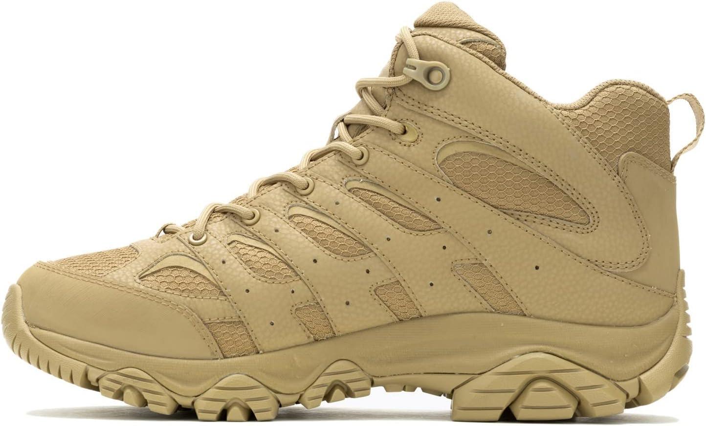 Merrell Men’s Moab 3 Mid Response Tactical Waterproof Boots, Lightweight Full Grain Leather Work Hiking Outdoor Shoes(Dark Coyote)