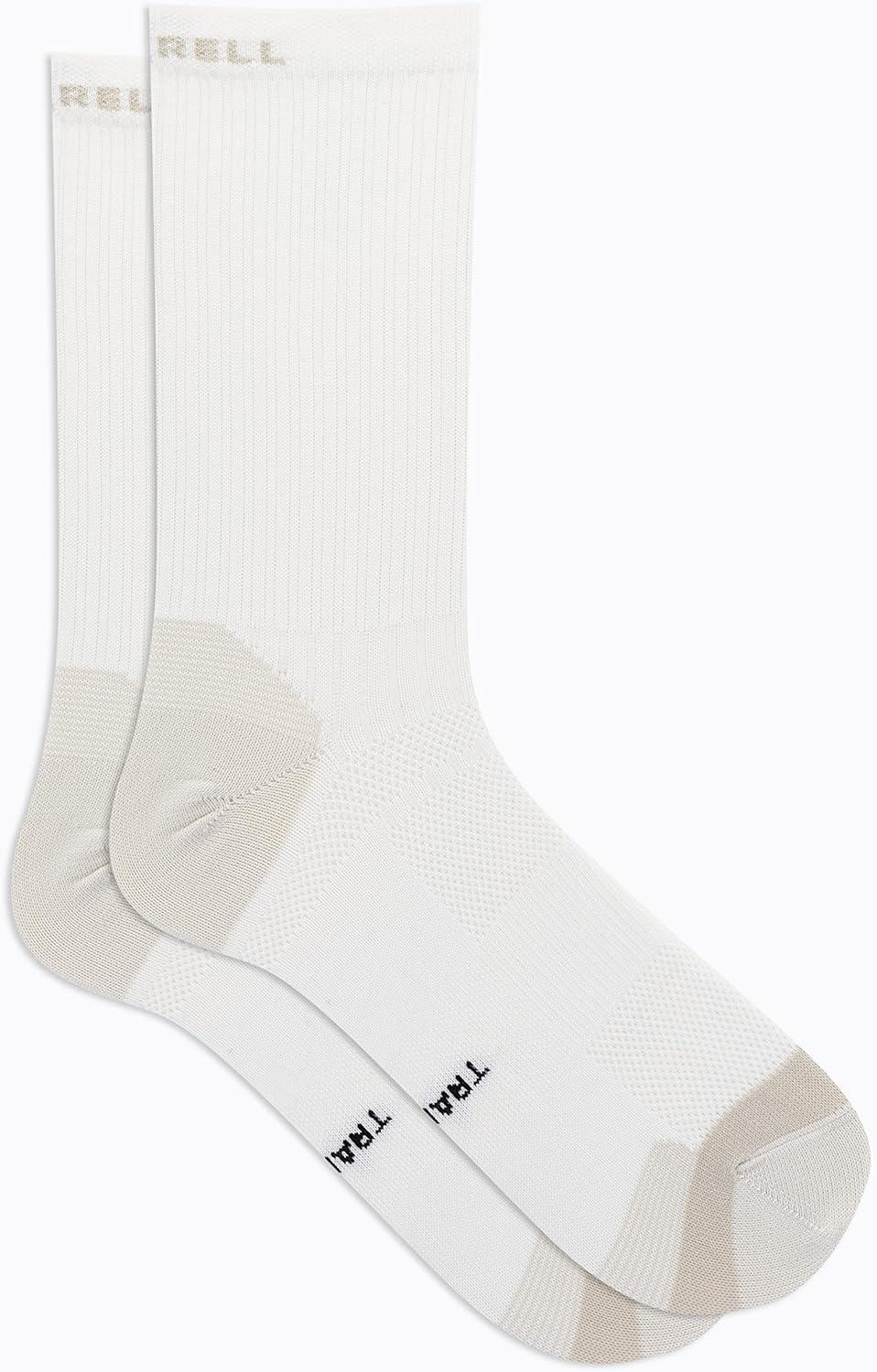 Merrell unisex-adult Men’s and Women’s Trail Running Lightweight Socks – Anti-slip Heel and Breathable Mesh(Mid Crew – White)