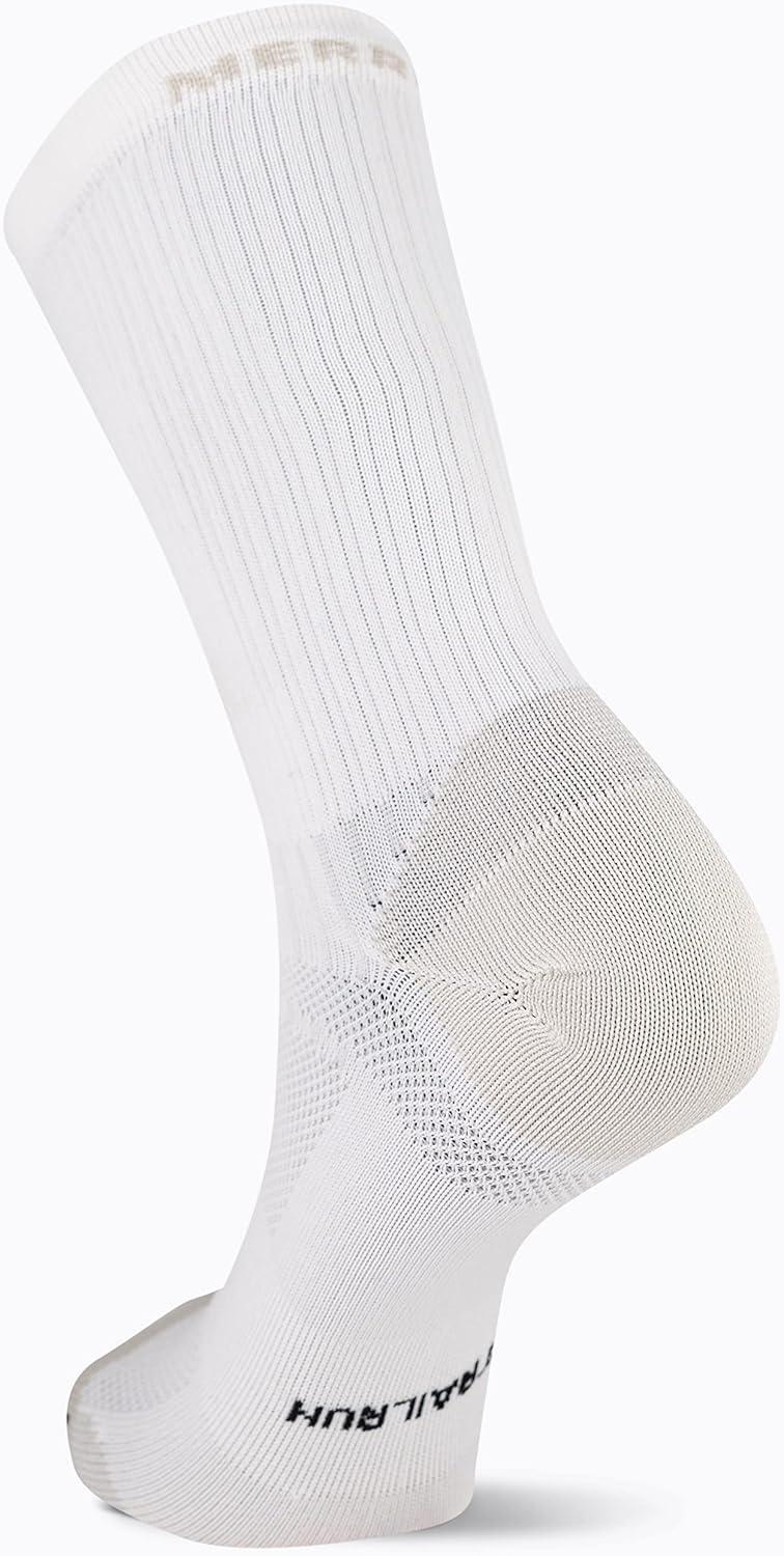Merrell unisex-adult Men's and Women's Trail Running Lightweight Socks - Anti-slip Heel and Breathable Mesh(Mid Crew - White)