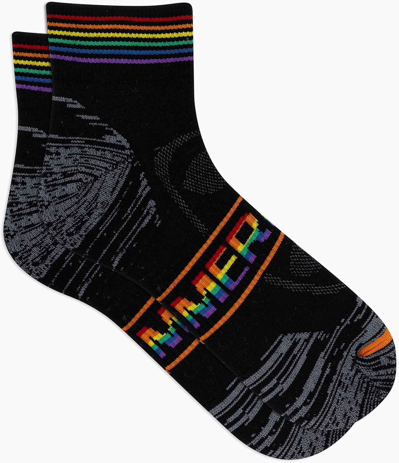 imageMerrell unisexadult Mens and Womens Zoned Cushioned Wool Hiking Ankle Socks  Breathable Arch SupportWhite Rainbow