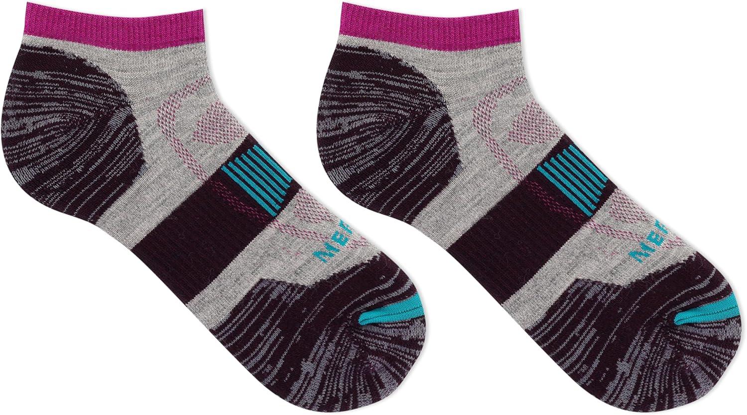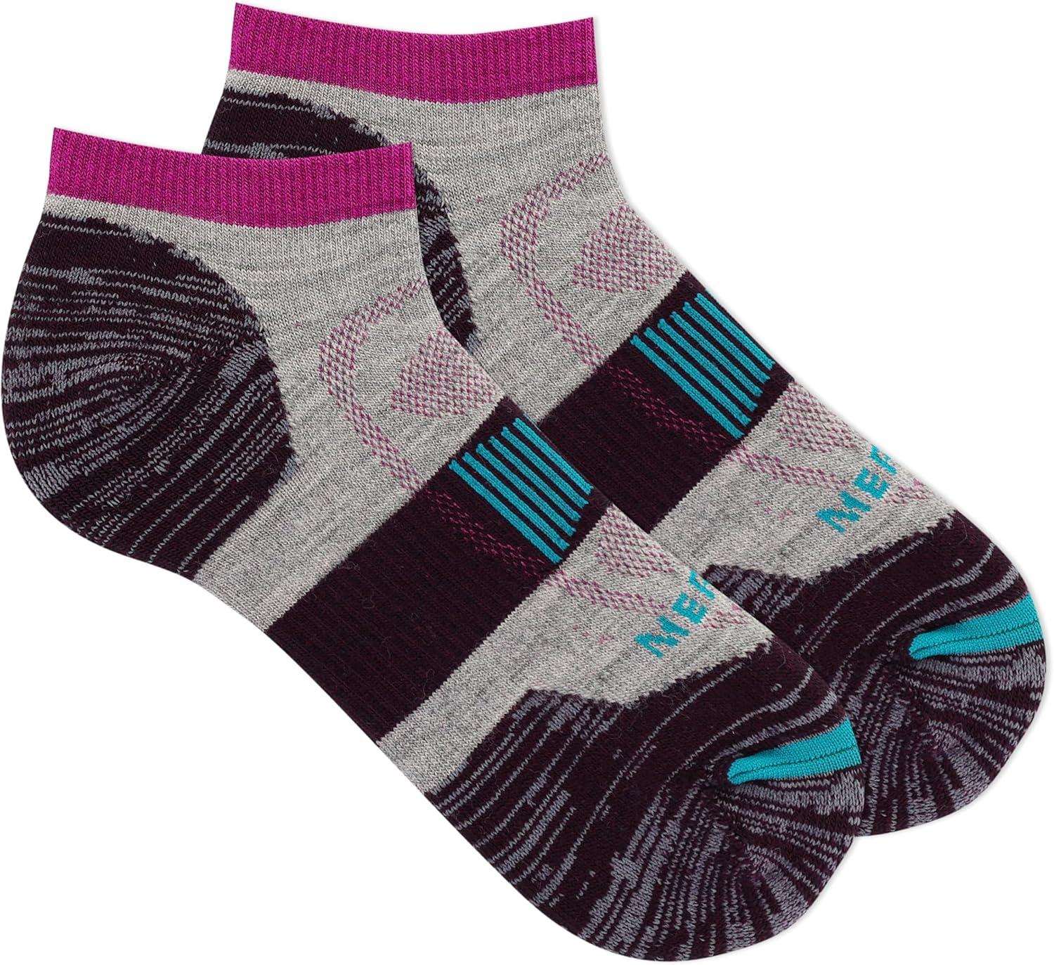 Trust your feet with quality Merino wool hiking socks crafted in Merrell comfort. Enjoy the benefits of natural moisture management, odor control and blister prevention that make Merino wool socks the hiker’s choice for any rugged outdoor adventure. Cushioned where you need it most, this all-around sock buffers tough terrain for a more comfortable, blister-free journey. Hike on in style with fresh pops of color in a sock available in ankle quarter, low cut and crew length. The deep heel pockets allow the perfect fit and comfort so your feet won’t fade before you’ve reached the summit.