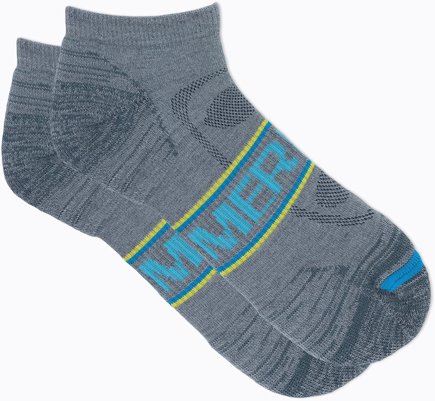 Merrell unisex-adult Men’s and Women’s Zoned Cushioned Wool Hiking Socks – 1 Pair Pack – Breathable Unisex Arch Support(Gray/Blue)