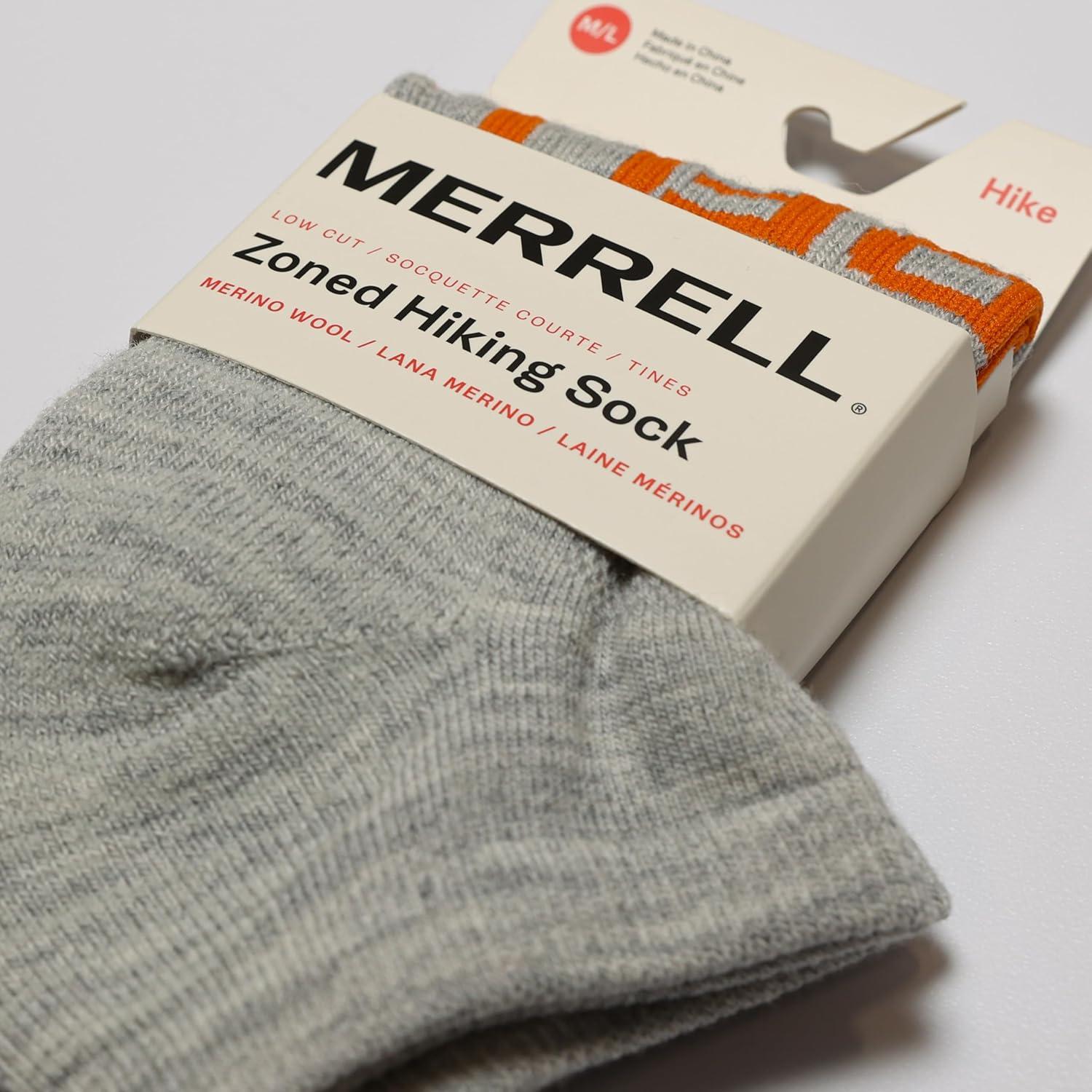 Merrell unisex-adult Men's and Women's Zoned Cushioned Wool Hiking Socks - 1 Pair Pack - Breathable Unisex Arch Support(Gray)