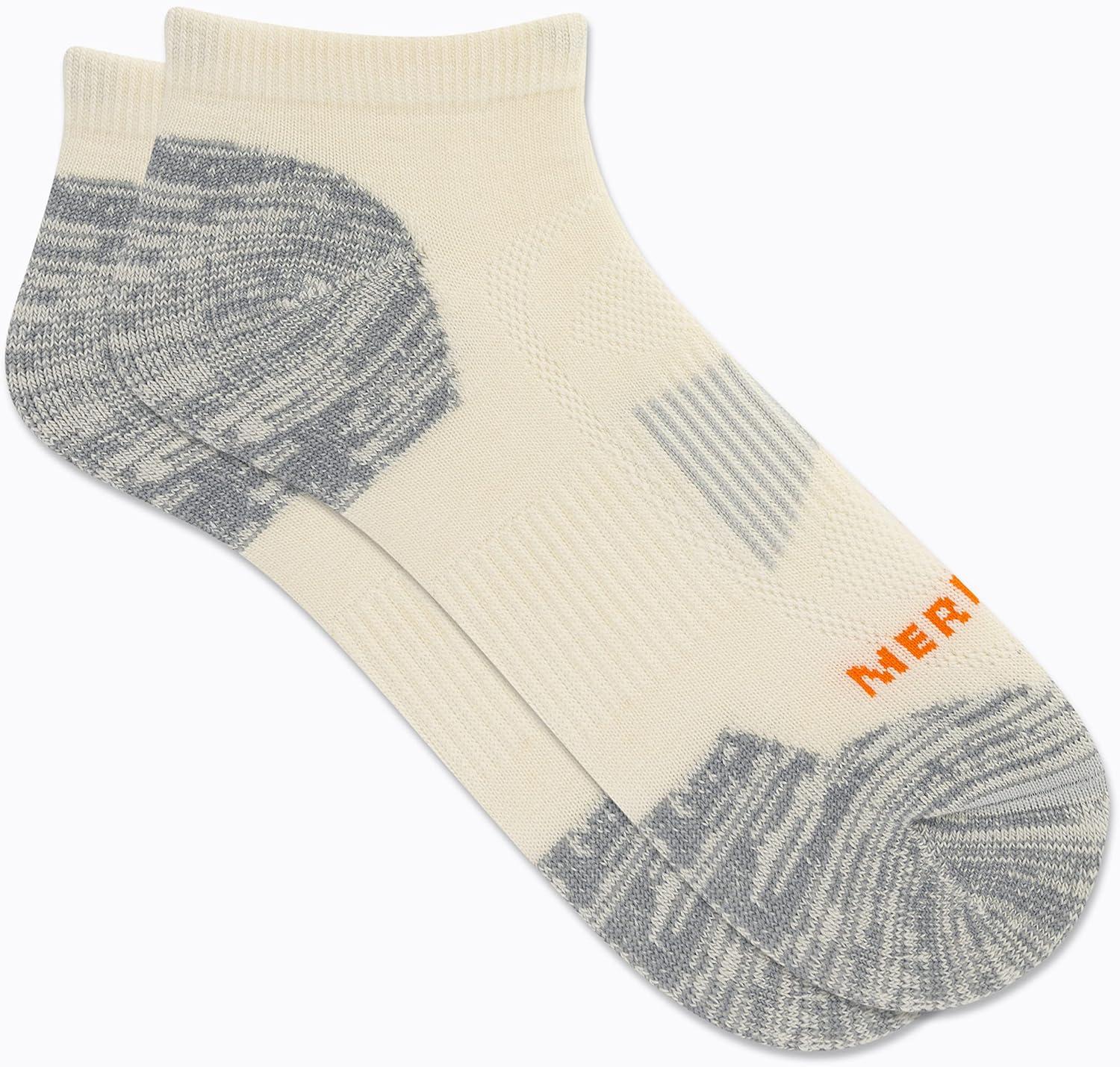 Trust your feet with quality Merino wool hiking socks crafted in Merrell comfort. Enjoy the benefits of natural moisture management, odor control and blister prevention that make Merino wool socks the hiker’s choice for any rugged outdoor adventure. Cushioned where you need it most, this all-around sock buffers tough terrain for a more comfortable, blister-free journey. Hike on in style with fresh pops of color in a sock available in ankle quarter, low cut and crew length. The deep heel pockets allow the perfect fit and comfort so your feet won’t fade before you’ve reached the summit.